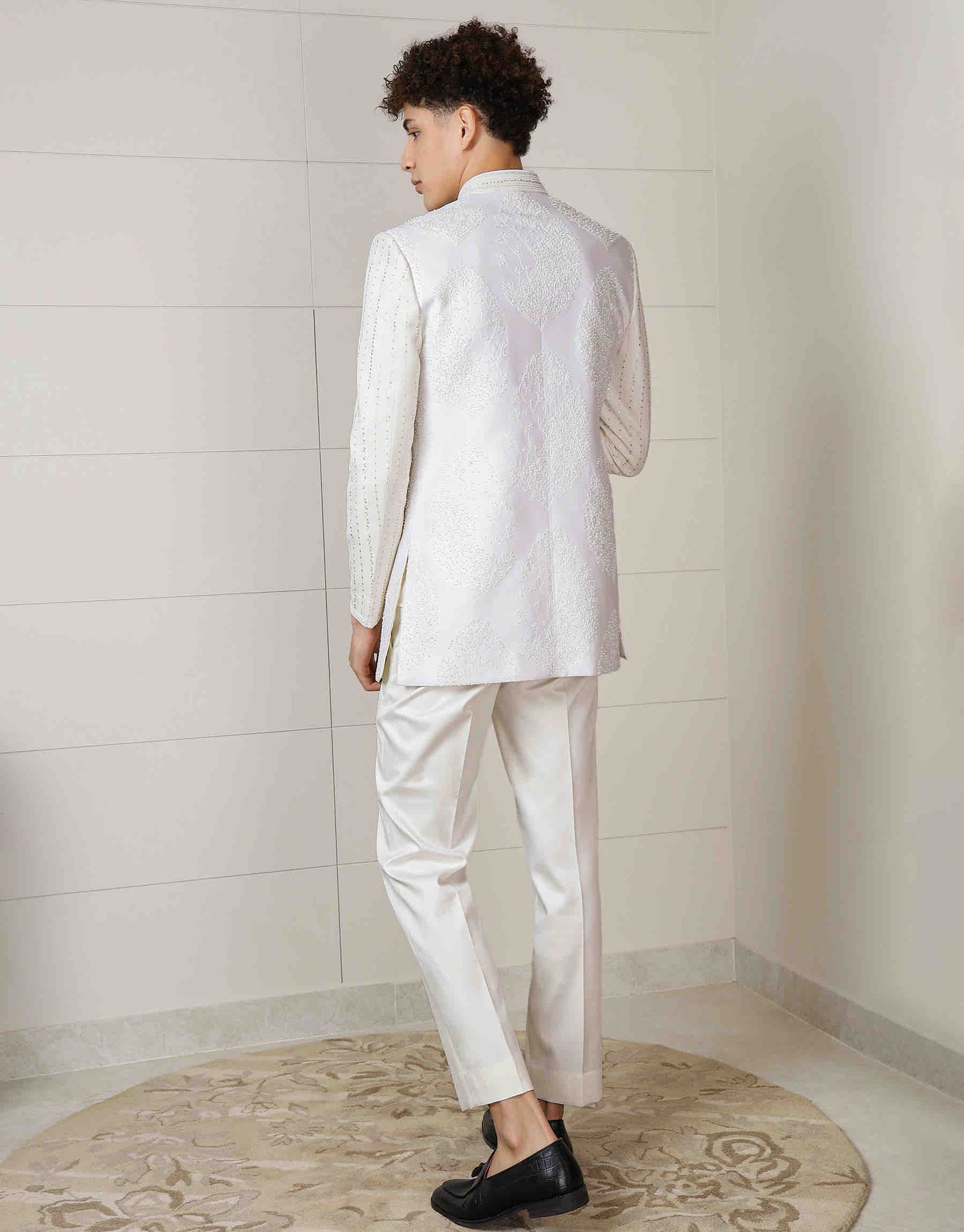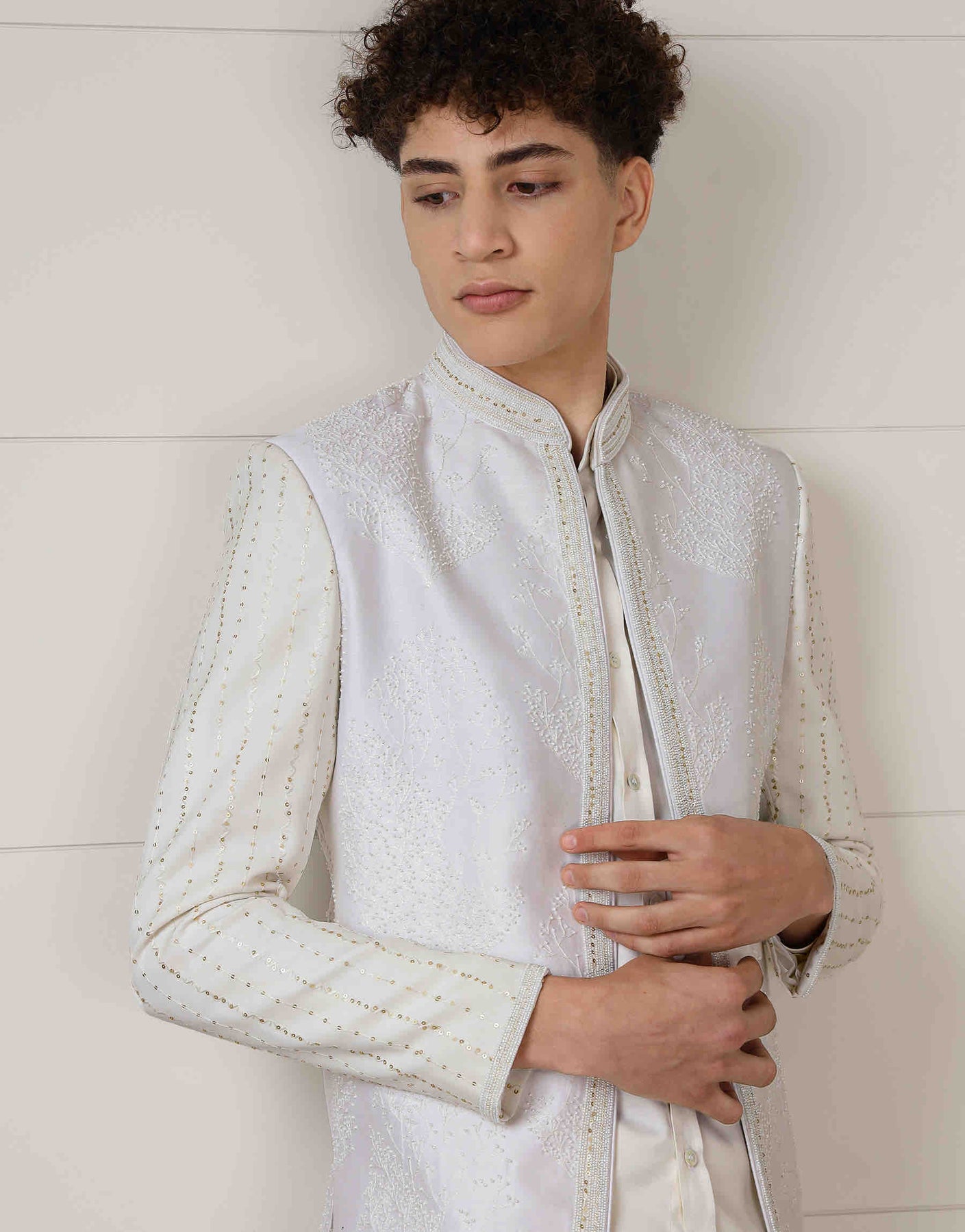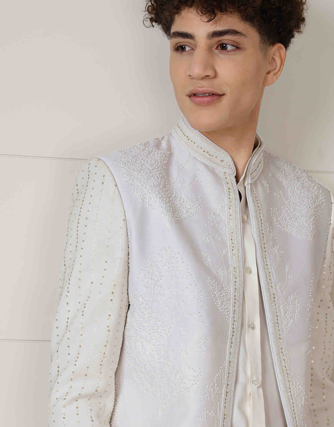 Open neck embroidered 3pcs set can be worn with transparent or normal shirt