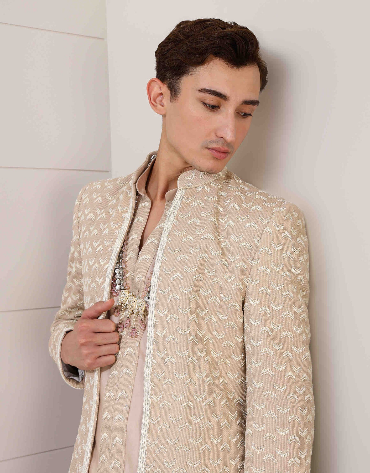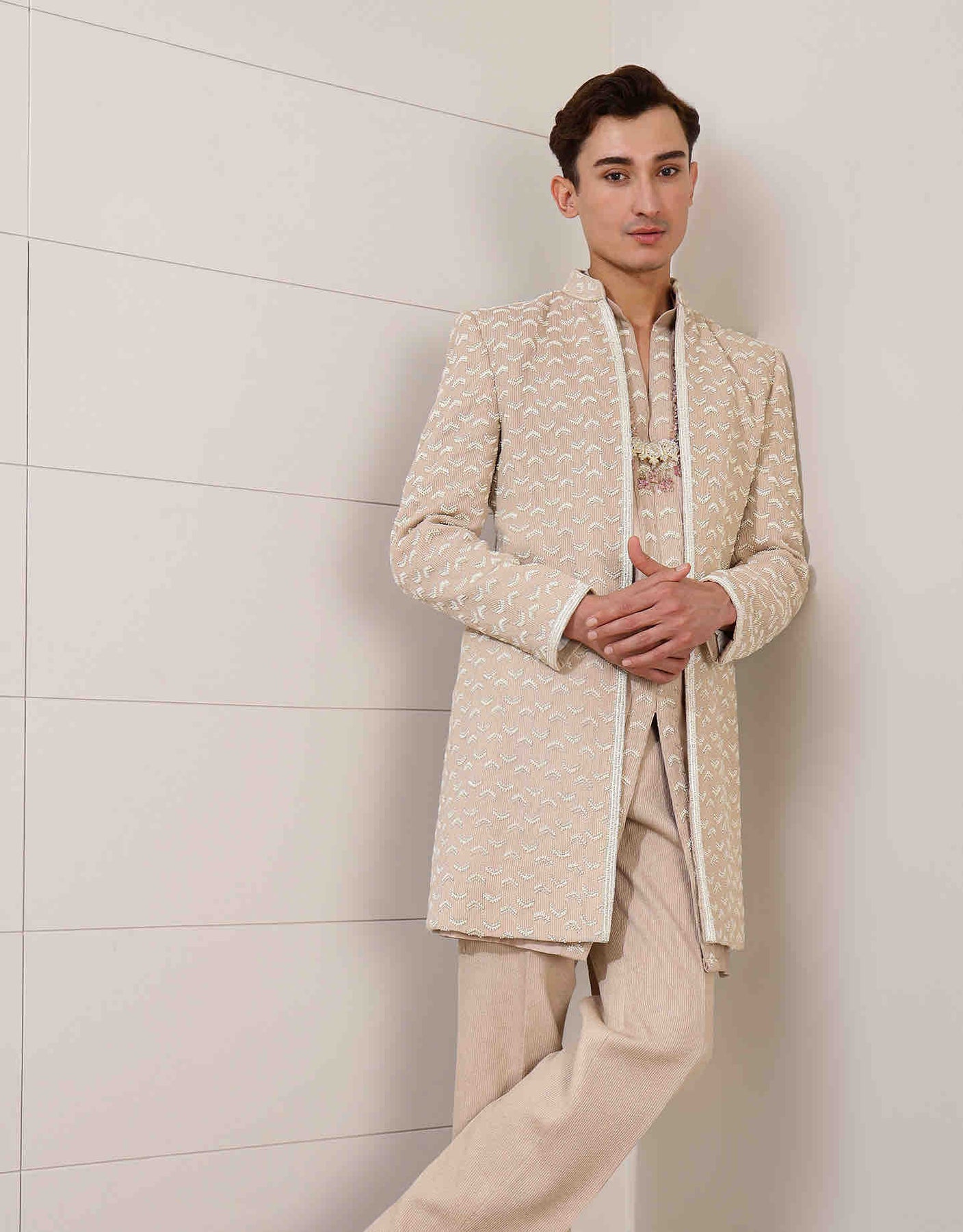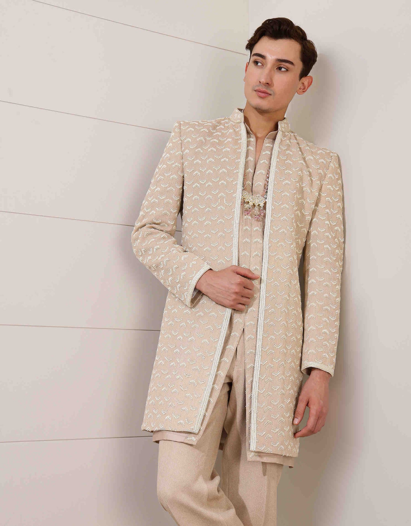 Luckhnawi fabric rose gold front open3 pcs fusion wear.