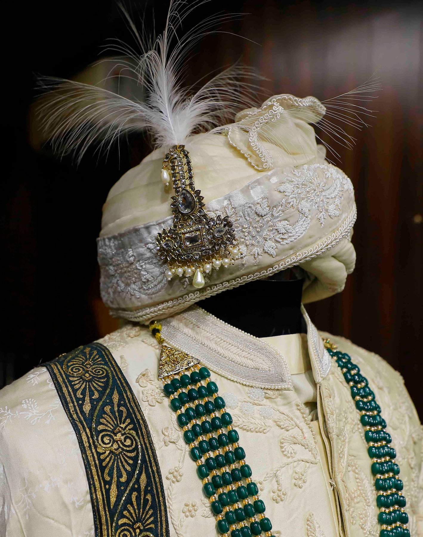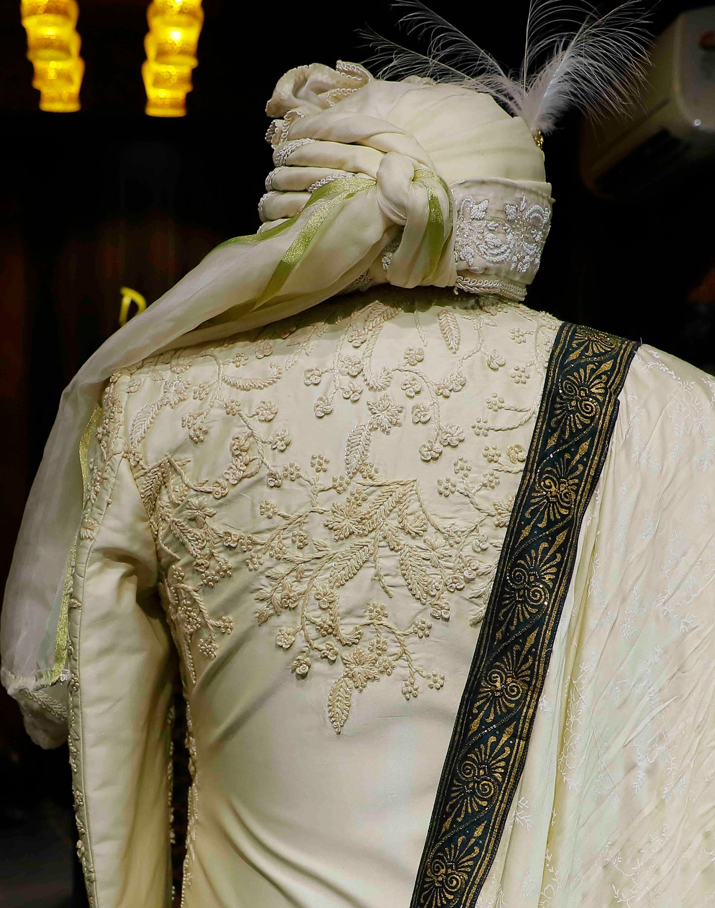 The Pinnacle of Luxury: Exclusive Off-White Sherwani with Green Border