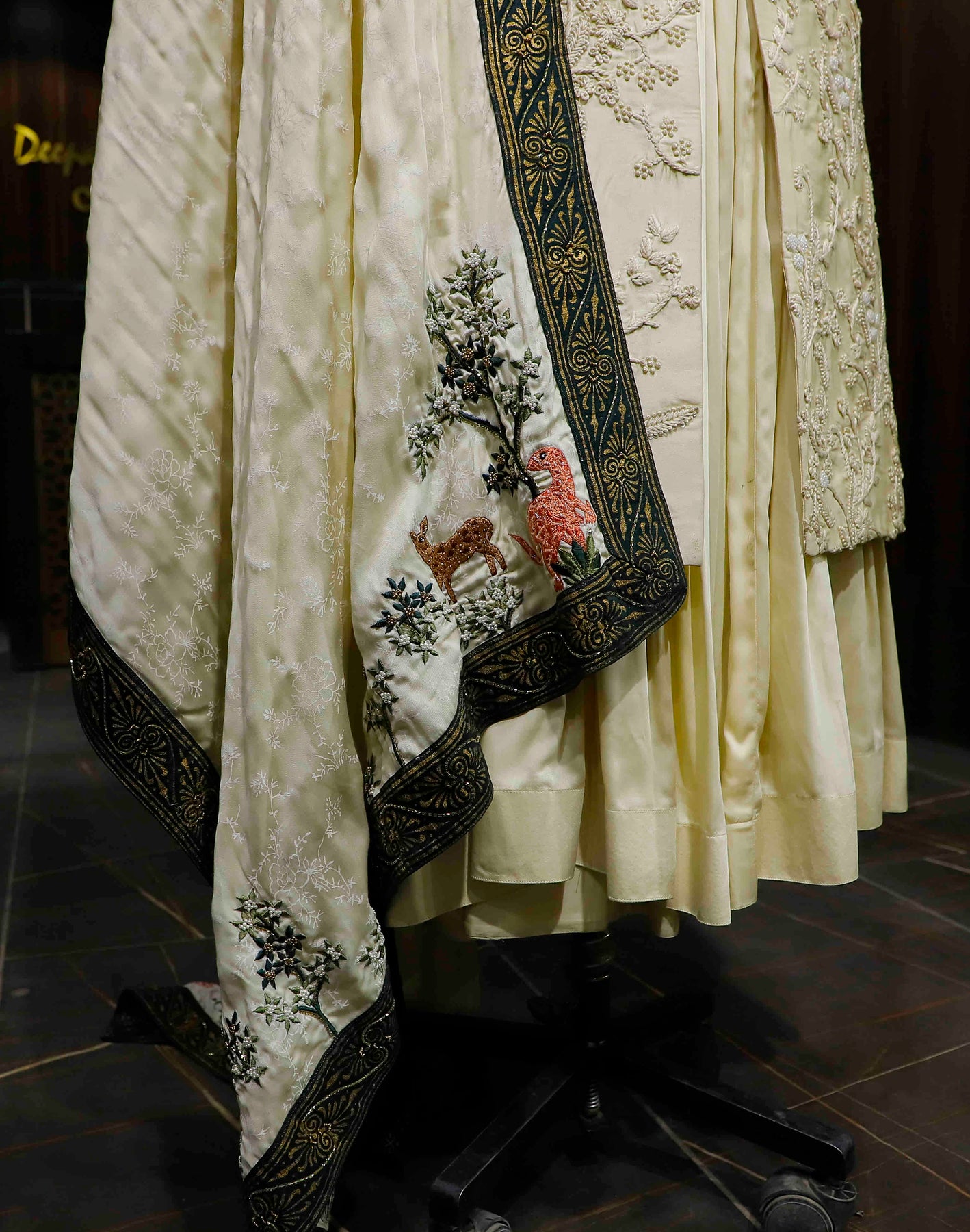 Presenting a sherwani that transcends fashion—this is an exclusive piece from Deepak S. Chhabra Couture, designed for the groom who demands nothing less than perfection. Crafted in a timeless off-white, this sherwani is adorned with intricate thread work, reflecting the epitome of artisanal craftsmanship.