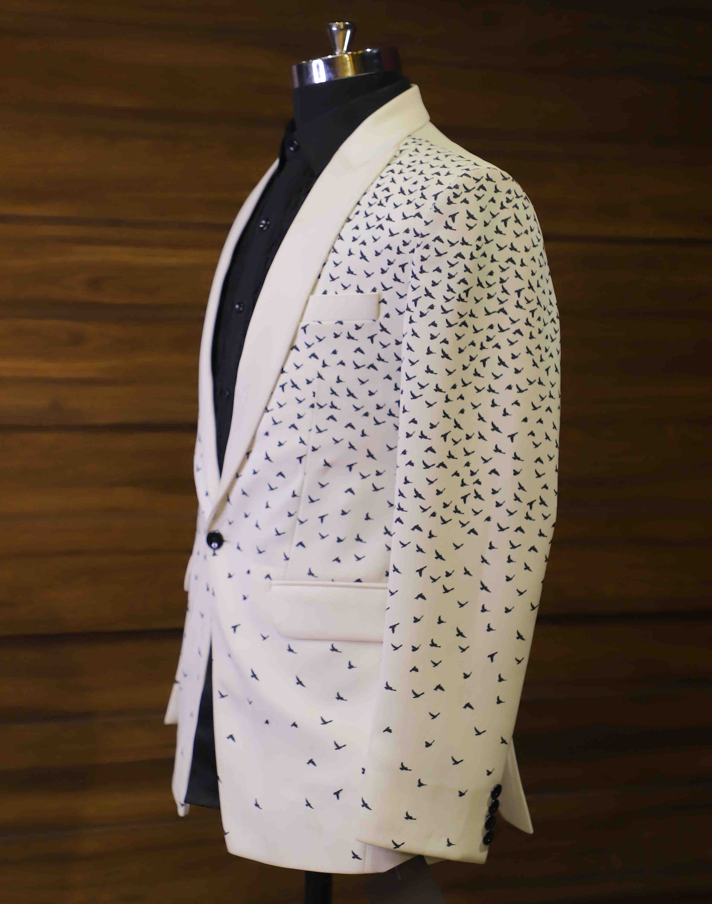 Redefine formal elegance with our hand-painted bird tuxedo set, a perfect blend of artistic innovation and classic sophistication. Explore this exclusive collection at our boutique or online and discover a tuxedo that makes a memorable impression.