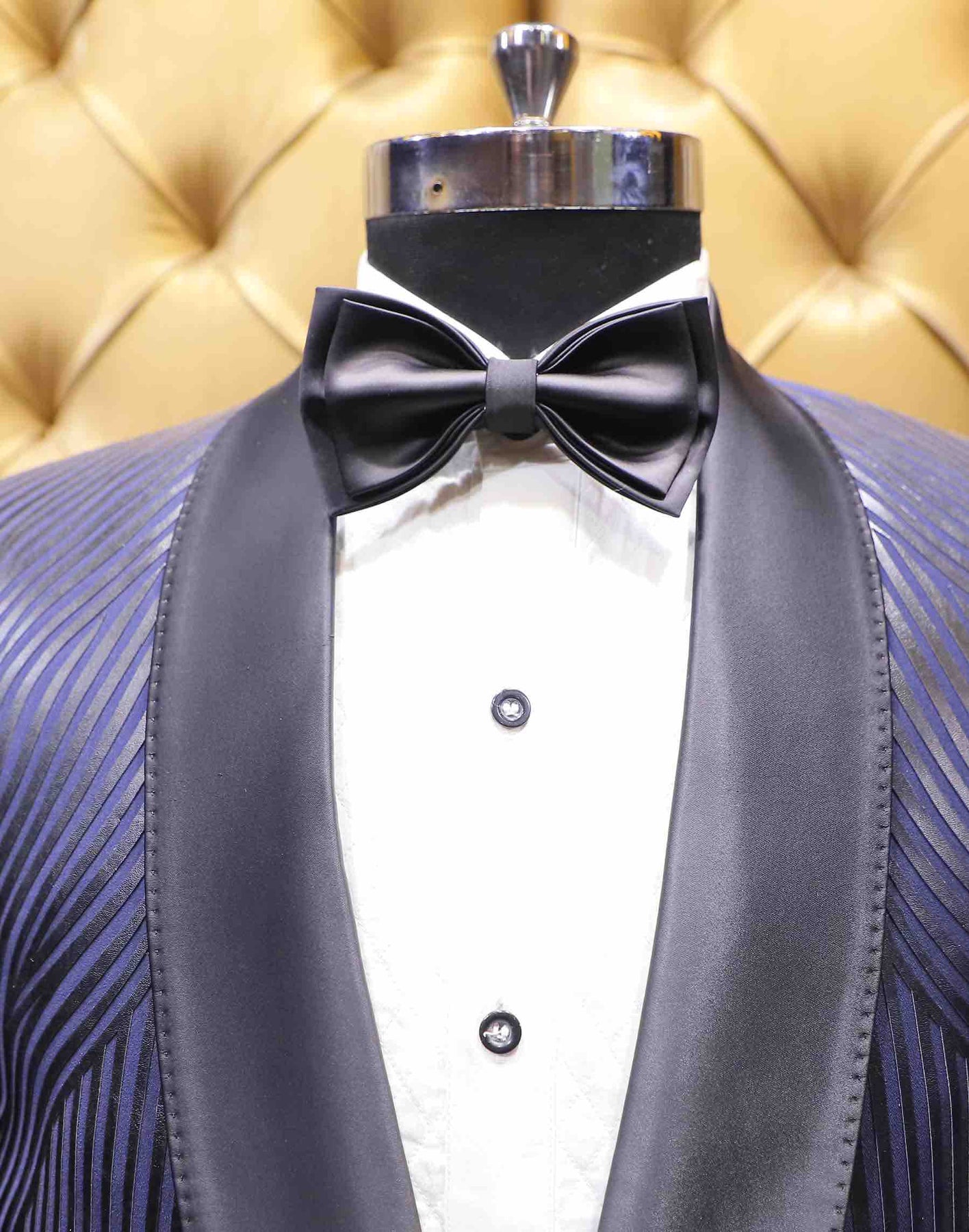 A standout feature of this set is the exquisite double-layered bow, crafted in a rich deep blue hue. This striking detail brings a bold yet elegant touch, making it perfect for formal occasions.